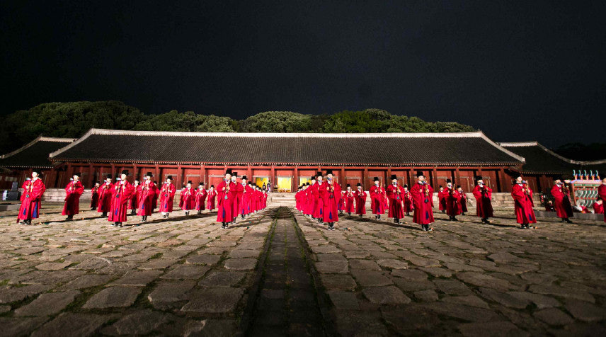 왕은 제사 며칠 전부터 "재궁"에 머물며 몸을 깨끗이 씻고 마음을 정갈하게 하여 , 오로지 조상을 생각하며 이 새벽의 의례를 준비하였습니다. 조용한 새벽에 웅장한 음악이 울리며 제사를 지내는 모습이신비로운 분위기를 자아냈을 것같습니다