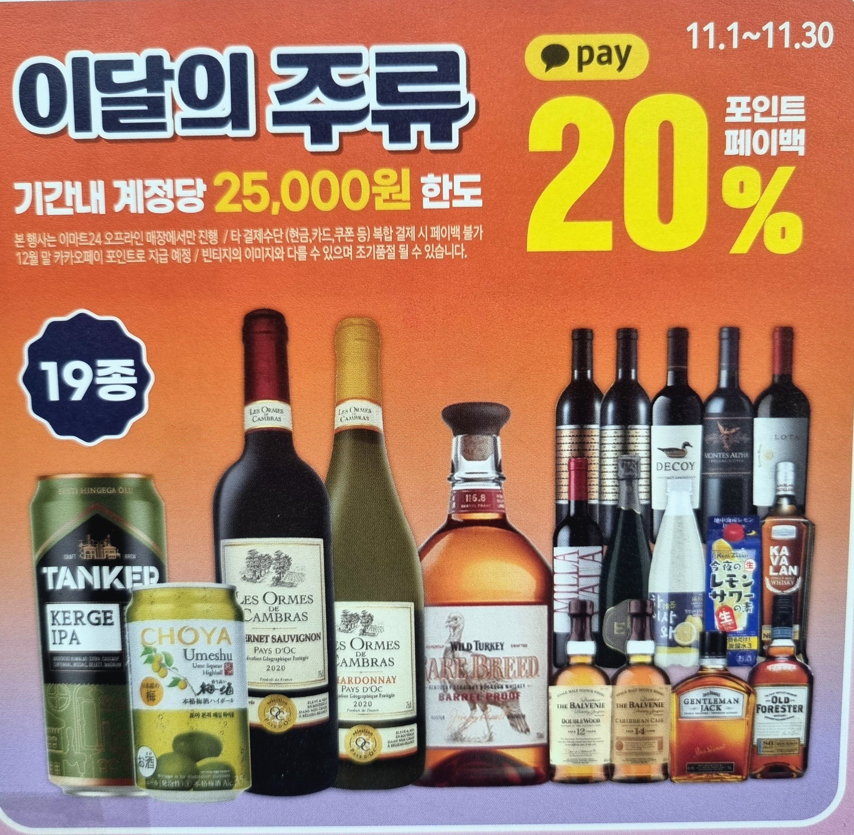이마트 24 편의점에서 11월 30일까지 주류행사를 합니다,