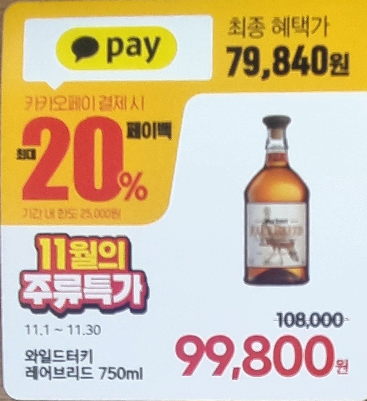 주류를 카카오페이로 구매하실 때 주류특가로 금액으로 결제가 되고 나머지 20%의 할인 금액은
