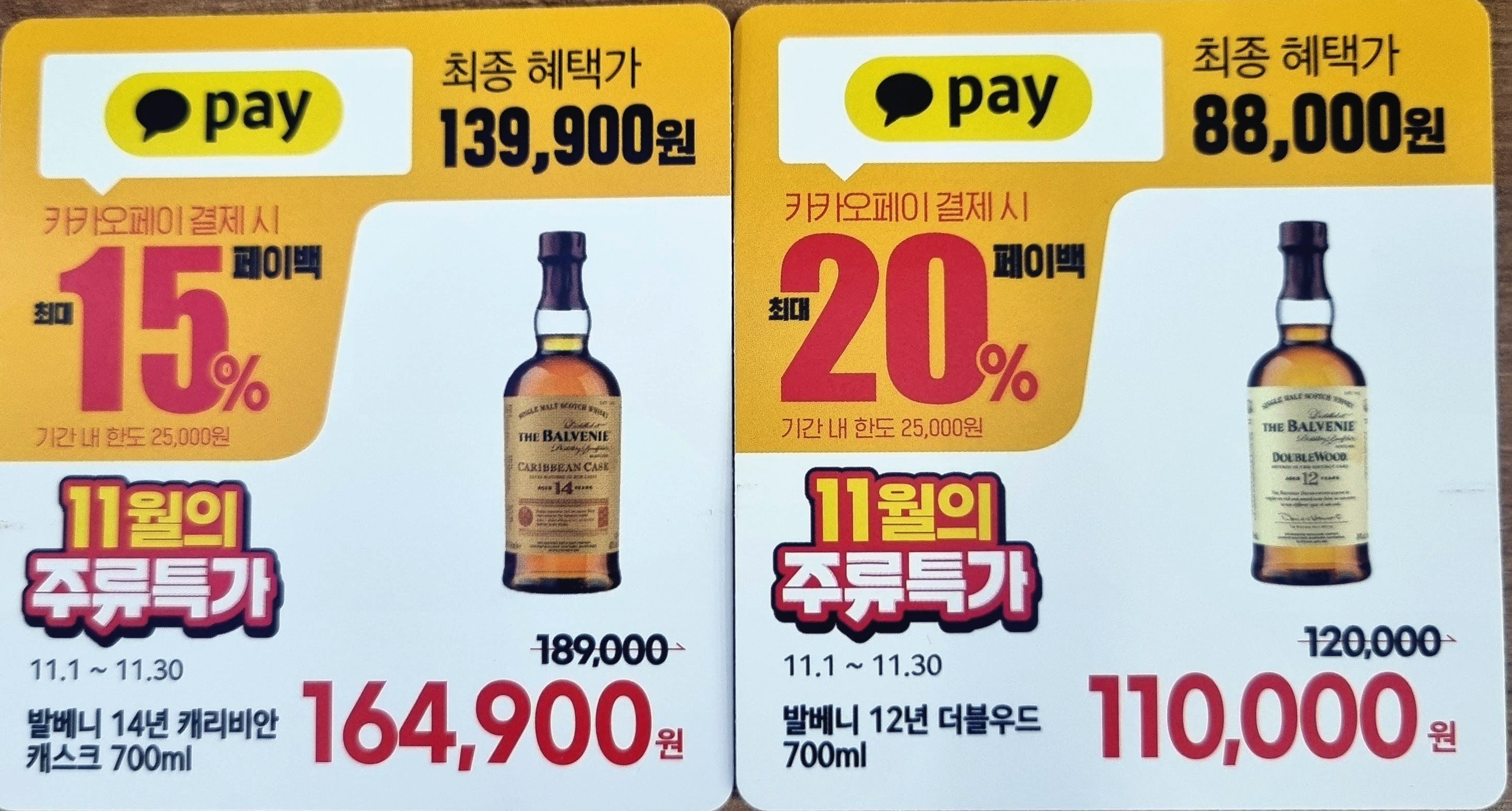 발베니 14년만 15%로 추가 할인되고 나머지는 20% 할인됩니다.