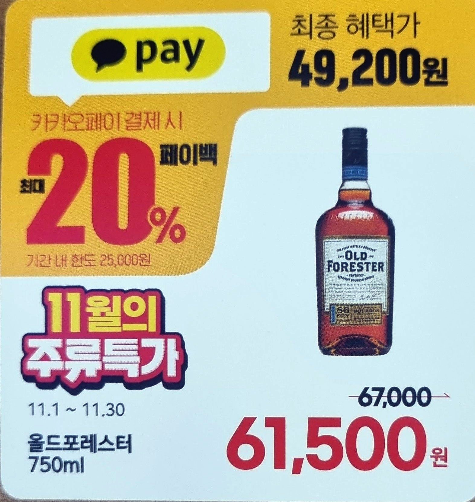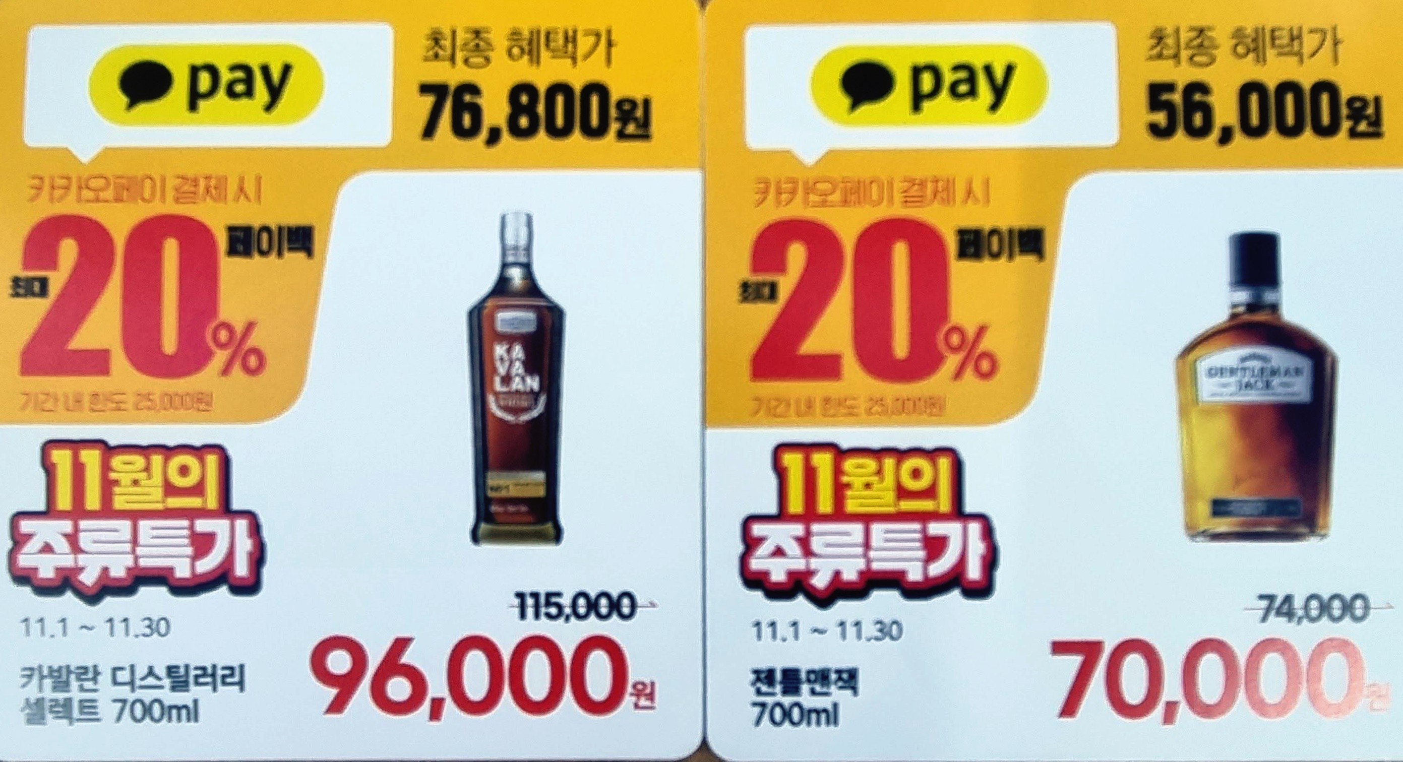 주류를 카카오페이로 구매하실 때 주류특가로 금액으로 결제가 되고 나머지 20%의 할인 금액은