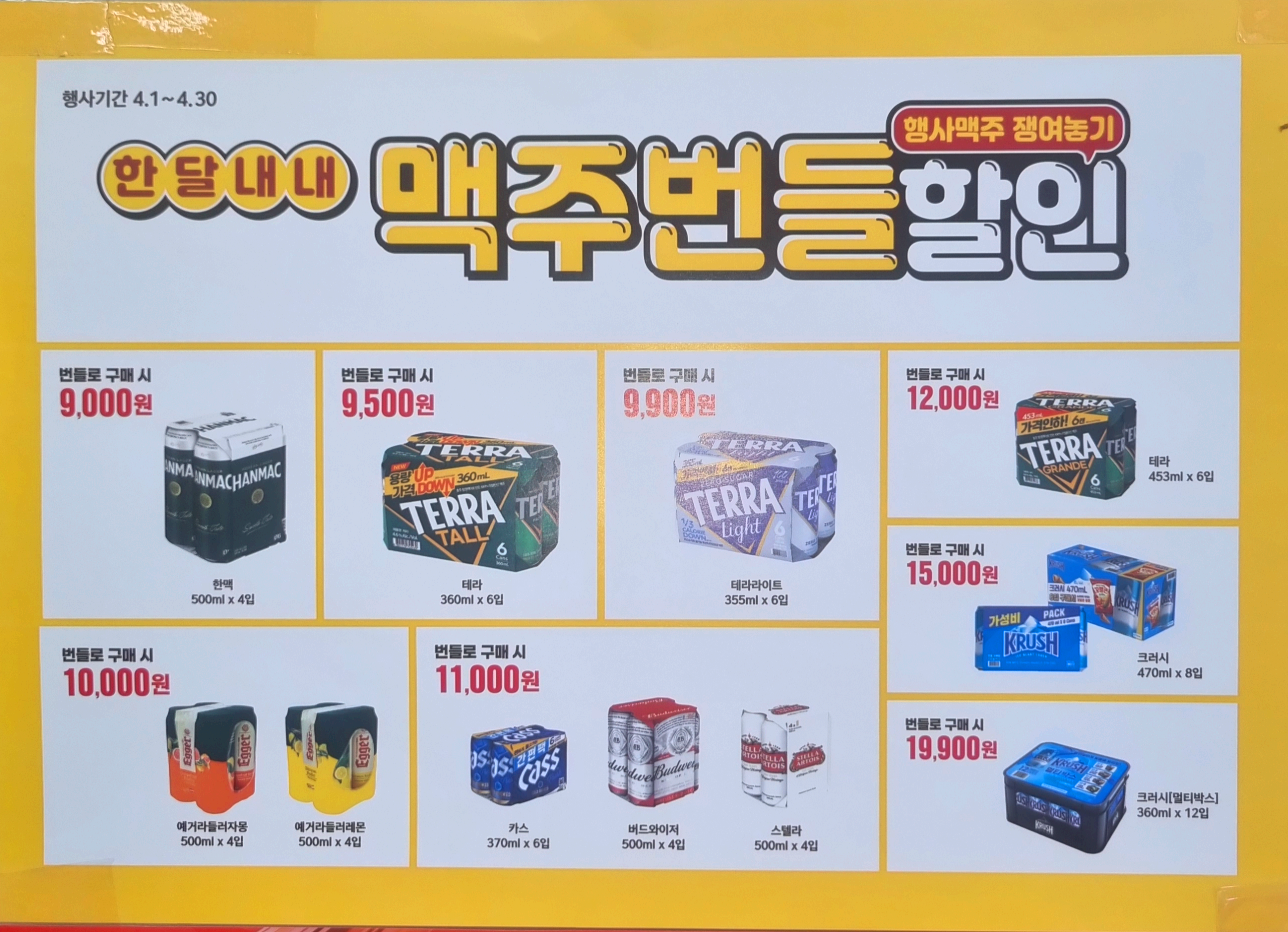 맥주 행사 상품중에 번들로 사시면 더 저렴하게 구매하실 수 있으리니 참고하시기 바랍니다.