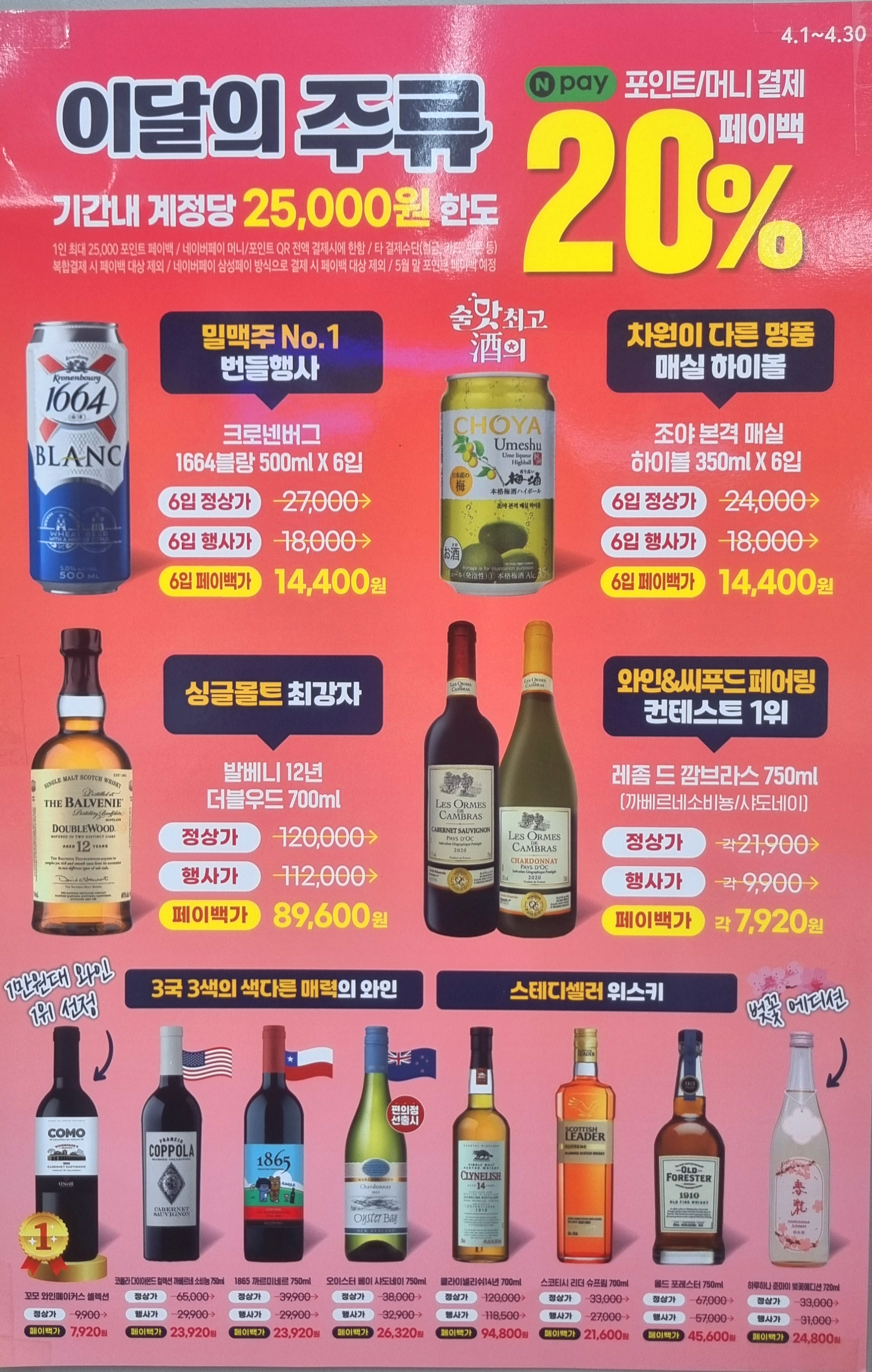 그리고 가격이 좀 더 저렴하면 좀 더 기분좋은 술 한잔이 되지 않을까 싶어 이마트 24 편의점에서 4월 주류할인 행사 품목들을 소개하려고 합니다.