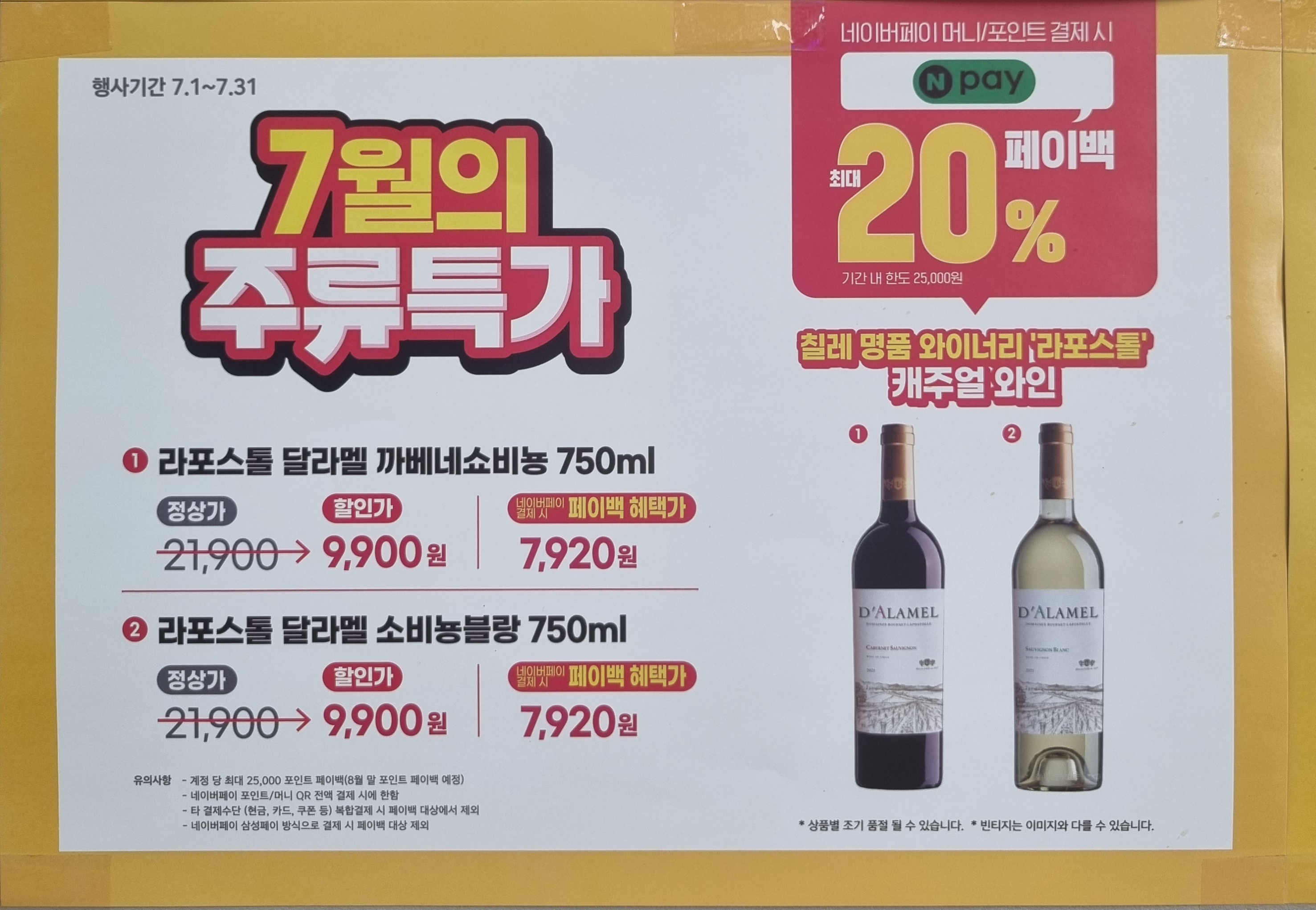 이번 7월, 네이버페이로 결제하면 최대 20%까지 페이백 받을 수 있는 ‘이달의 주류’ 행사가 진행 중입니다.