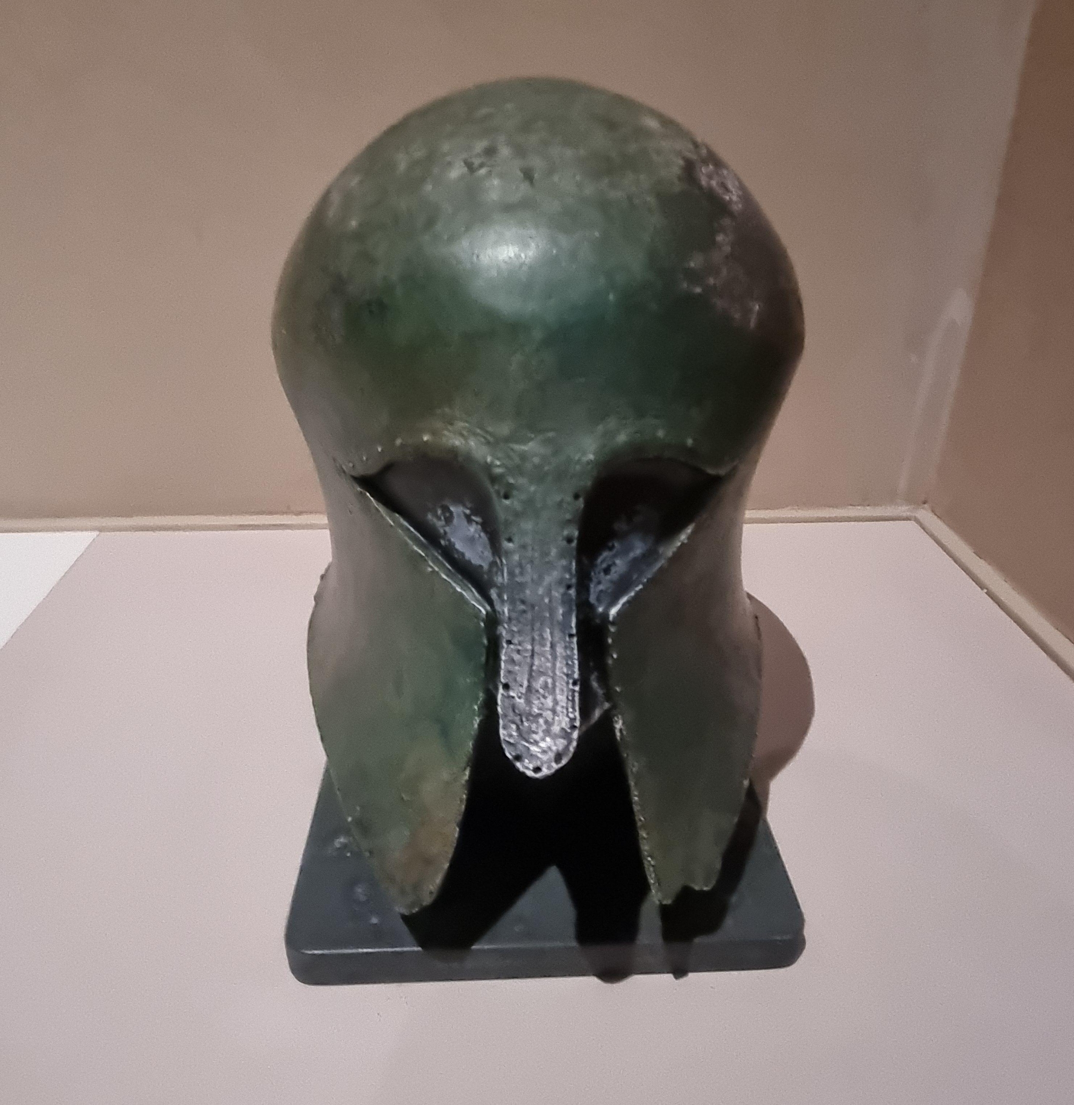 이 청동투구는 1875년 독일 고고학자 에른스트 쿠트티우스가 이끄는 조사단에 의해 제우스신전에서 발굴된 2600여 년 전에 제작된 고대 그리스유물이었습니다.